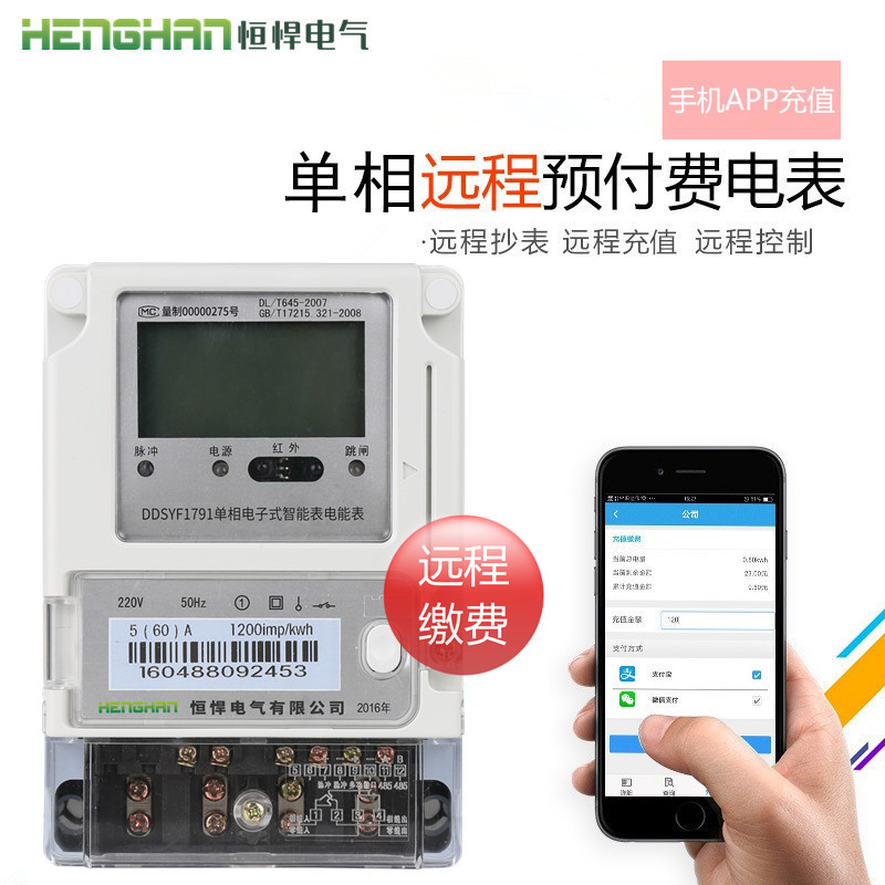• 恒悍單相預付費電表型號證...